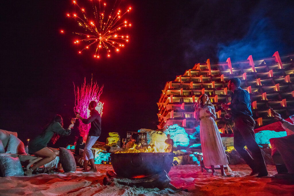 For larger, more exclusive gatherings (16 to 20 guests), Grand Velas Boutique Los Cabos is an adults-only sanctuary that offers a four-day celebration defined by Mexican viticulture and sound therapy. Highlights include a seven-course pairing dinner on the Terraza Luna, accompanied by a live jazz trio or violinist, and the “Serenity Sunset” aquatic sound therapy.